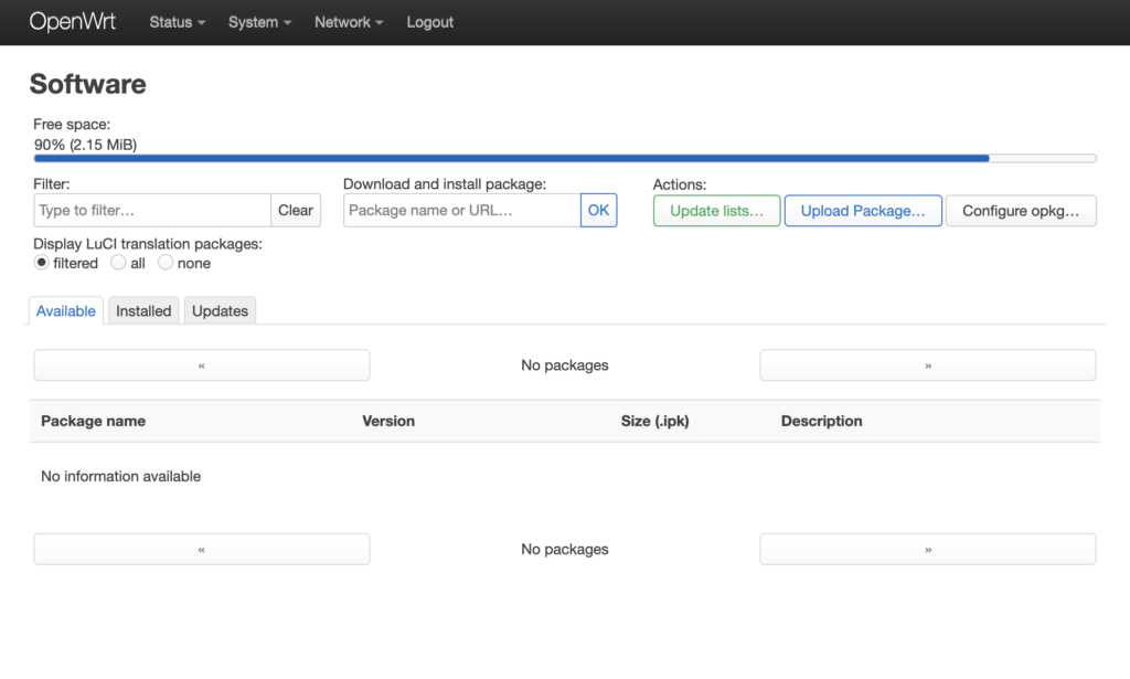 Установка пакетов openconneсt и luci-proto-openconnect